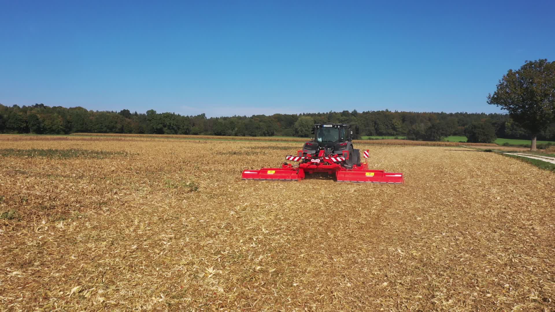 Mulchgerät in 2,80m Arbeitsbreite für Schlepper bis 200 PS, mit hydraul. Seitenverschiebung, Doppel-Dreipunktbock Kat II, Getriebe 1000 UpM mit integriertem Freilauf und aufgelöstem Antriebsstrang, 2 Gegenschneiden, Vorderer Steinschutz mit Ketten, Seitl. Welle im Ölbad mit 5 Keilriemen, Externe Keilriemenspannvorrichtung, Walze 220 mm Durchmesser, Rotordrehzahl 2025 U/min, Rotor Arbeitsdurchmesser 465 mm, Hammer-Schlegel Typ 14, Gleitkufen, CE-Schutzvorrichtungen